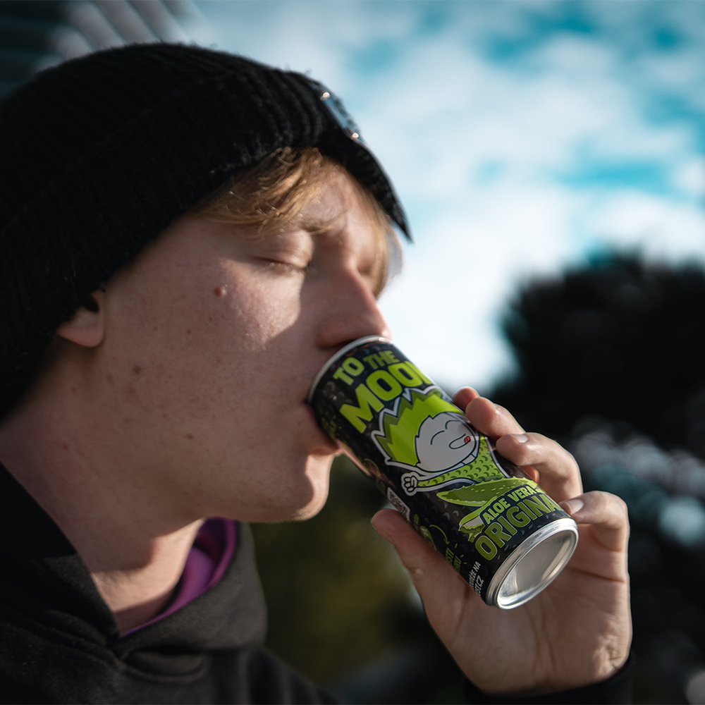 • TO THE MOON je osvěžující nealkoholický nápoj s obsahem aloe vera a citrónové šťávy.