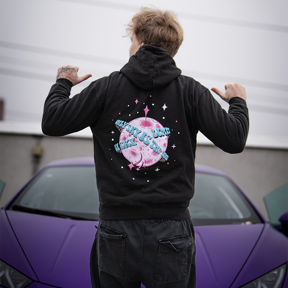 Mikina z limitované kolekce inspirované sny, odvahou a představivostí. Na první pohled jednoduché, ale s vesmírnou energií - nápis MOON na hrudi a růžový měsíc s mottem Only sky is the limit! na zádech. Modré detaily jsou vytištěny prémiovou technikou puff print, která dodává potisku jemný 3D efekt a originální vzhled.