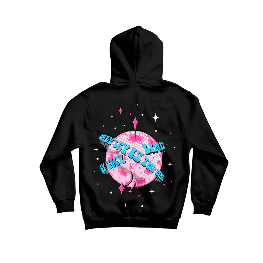 Mikina z limitované kolekce inspirované sny, odvahou a představivostí. Na první pohled jednoduché, ale s vesmírnou energií - nápis MOON na hrudi a růžový měsíc s mottem Only sky is the limit! na zádech. Modré detaily jsou vytištěny prémiovou technikou puff print, která dodává potisku jemný 3D efekt a originální vzhled.