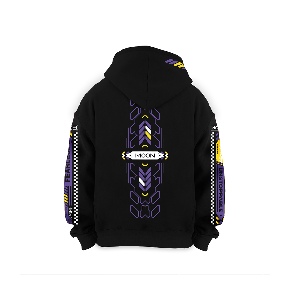 Na obrovský zájem vracíme tuhle ikonickou mikinu v nové verzi, která pořád drží Moonův styl a závodní vibe. Černý základ doplňují fialové a žluté detaily inspirované jeho Lambem, moderní potisky na rukávech a výrazná grafika na zádech. Vepředu decentní MOON logo, na rukávu jasné UNSTOPPABLE - přesně ten mindset, který k Moonovi patří.